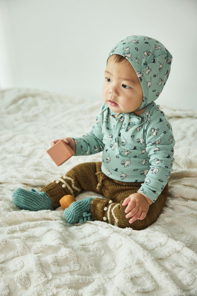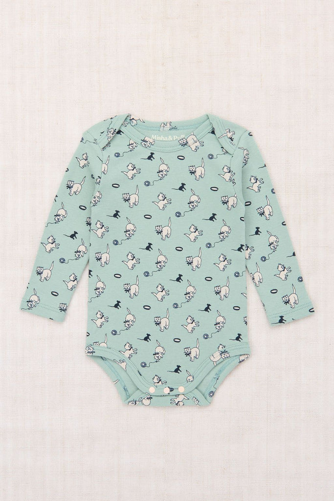 Baby Long Sleeve Lap Onesie in Sage Cat & Mouse