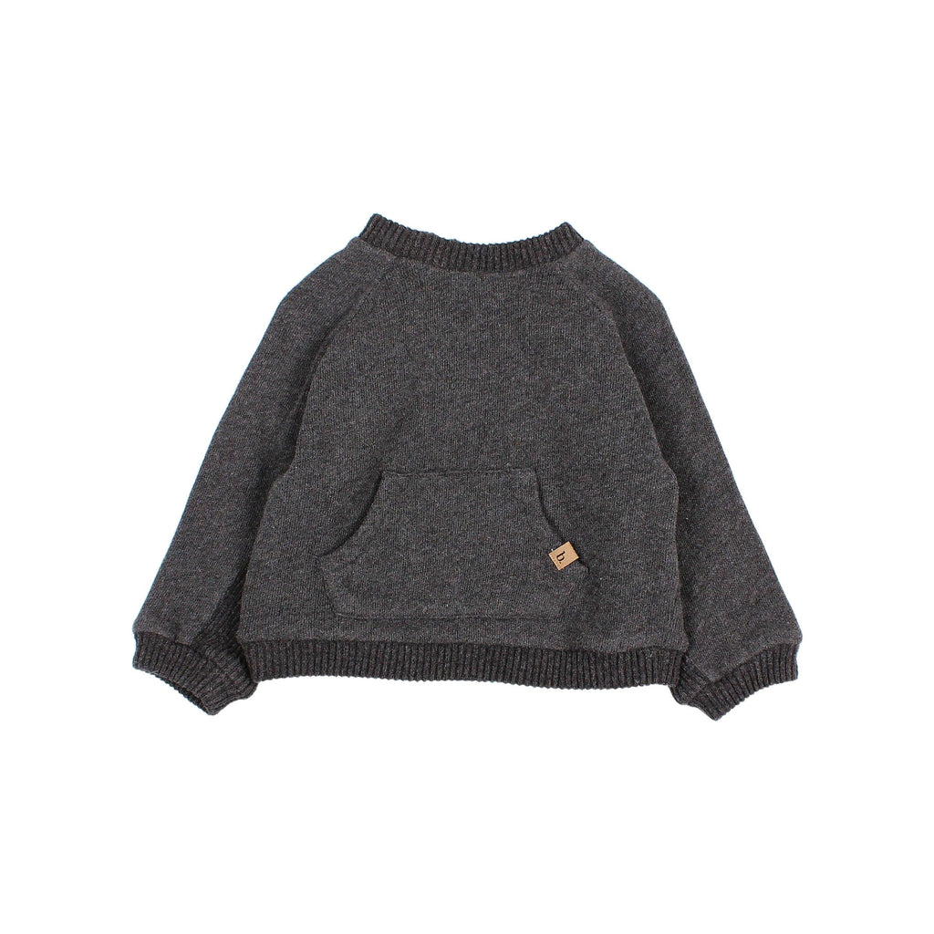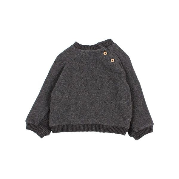 Soft cotton sweatshirt. Round neckline with two buttons opening on the back for easy putting on. Ribbed cuffs and hem. Kangaroo pocket on the front.