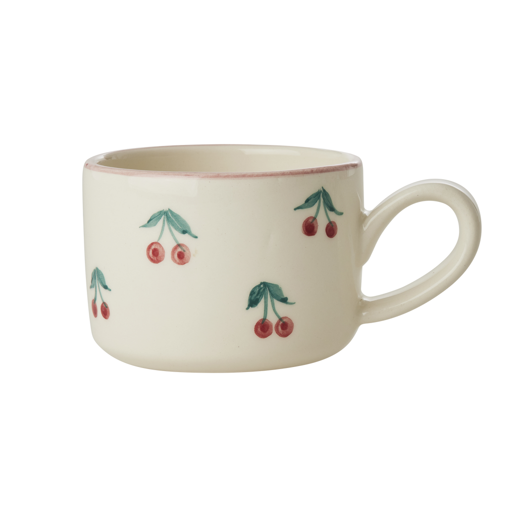 Ceramic Cappuccino Cup with Hand Painted Cherries - 6.7 oz