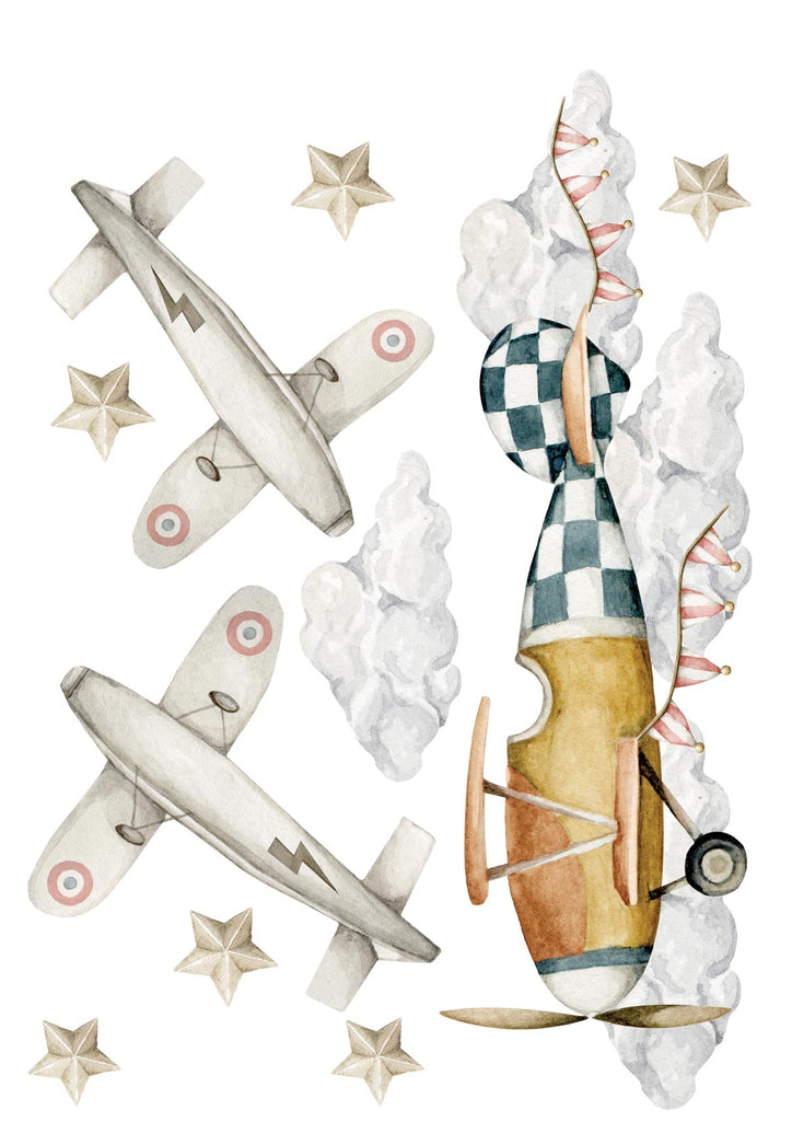 Well it is with these wall stickers! Planes from a fairytale in pastel colors. Painted with watercolor which seems to enhance the effect of a fairytale.