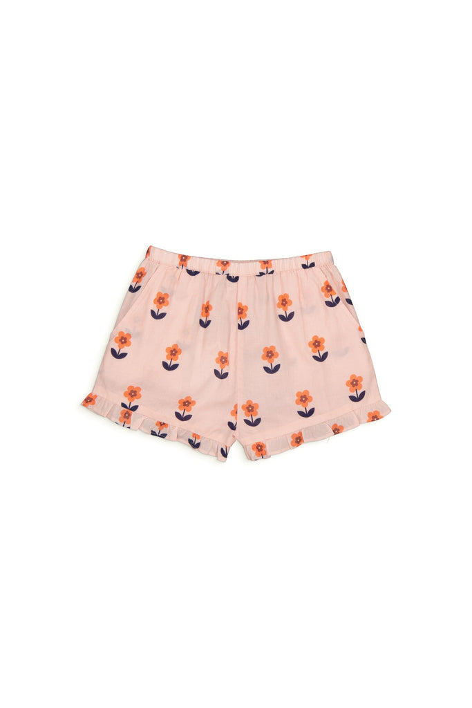 All over printed elastic waist voile shorts with ruffle at the bottom and Italian pockets.