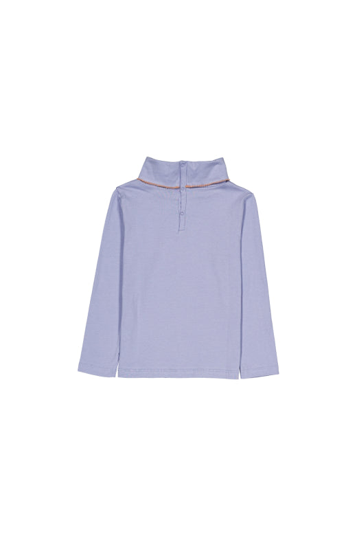 Long-sleeved turtleneck T-shirt in plain jersey with contrasting croquet at the end. Back press studs for collar opening.