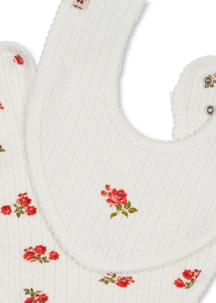 2-pack practical bibs made from breathable and soft cotton with decorative pointelle.