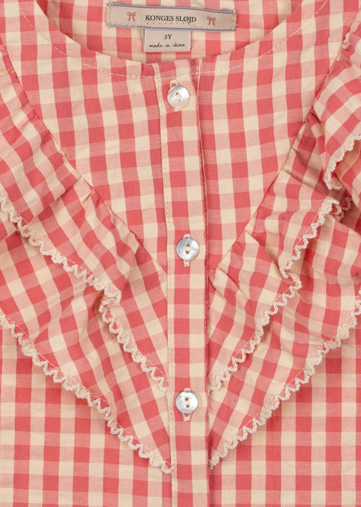 Blouse with frills in a soft seersucker fabric. Front buttoned.