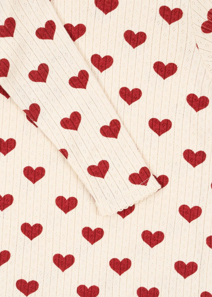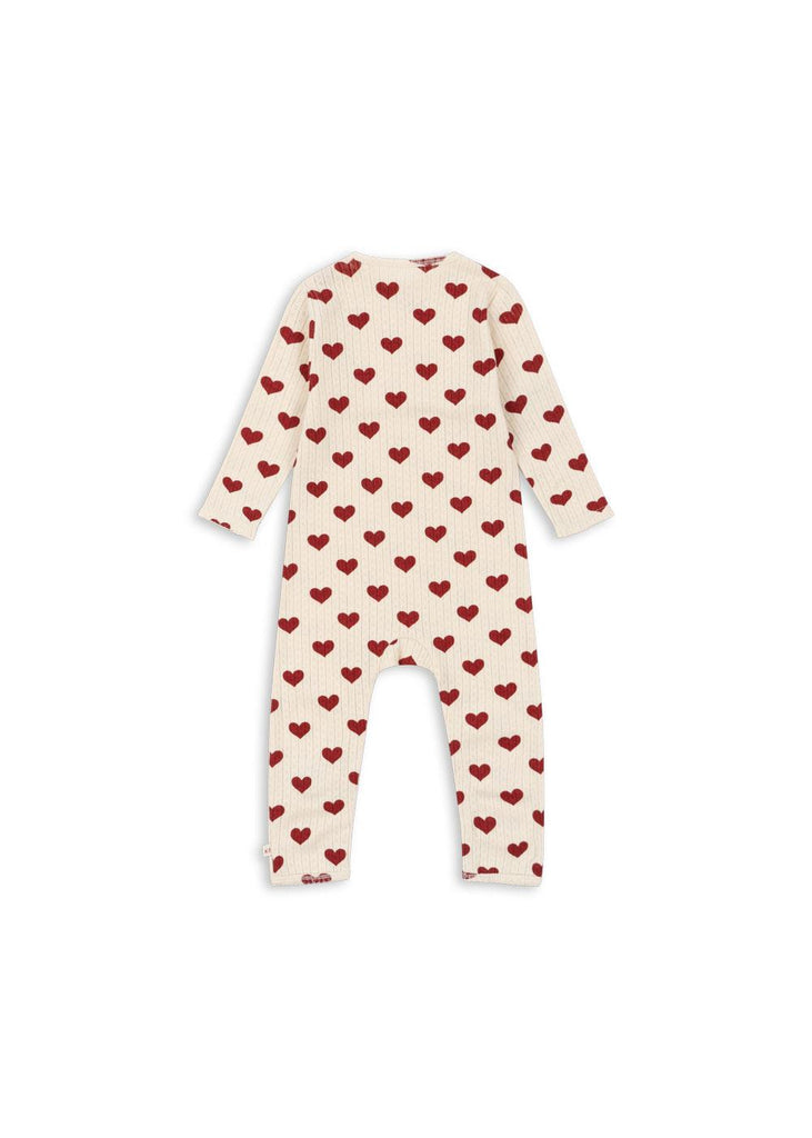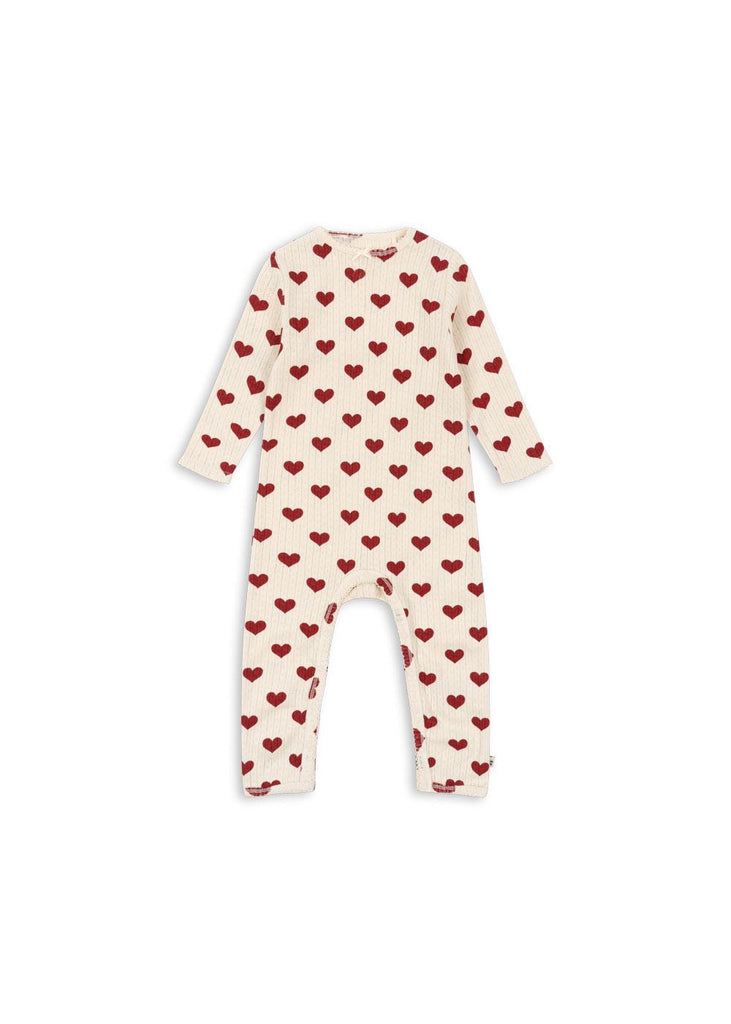SClassic onesie in soft organic cotton. Features snap buttons along the legs for easy dressing and a decorative pointelle pattern
