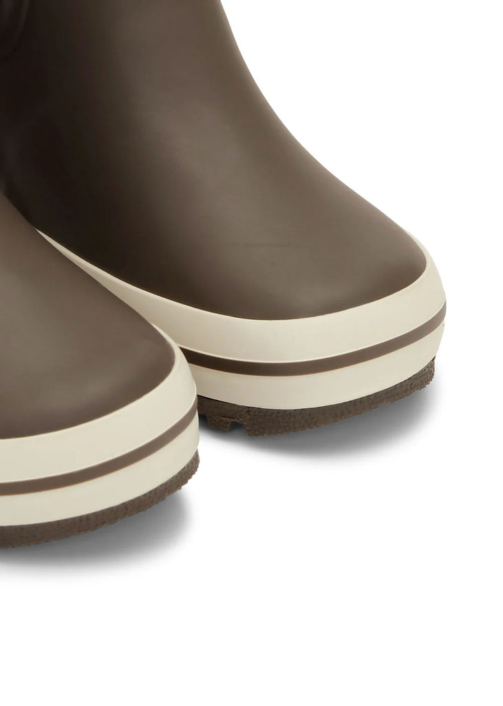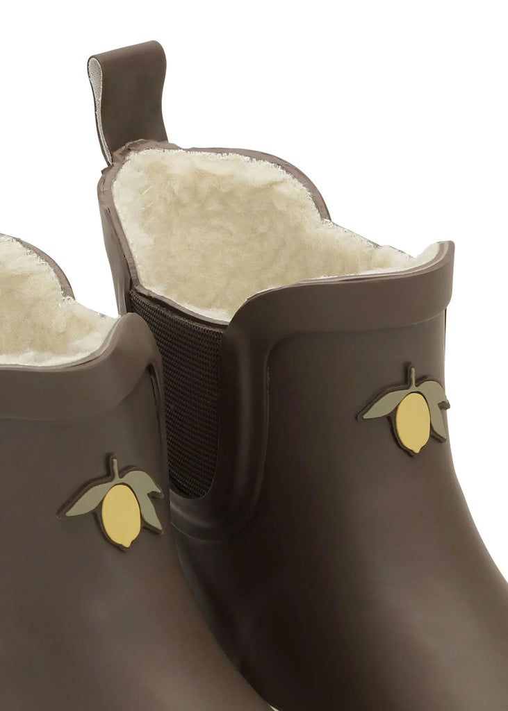 Comfortable rain boots with warm fleece lining. Easy to pull on for little hands.