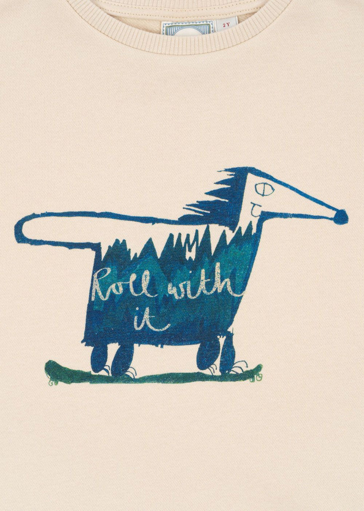 Soft sweatshirt made in organic cotton with a relaxed fit. Designed with dropped shoulders and a slightly boxy fit and finished with a cute sausage dog illustration in front made by Rosie's son, Jack.