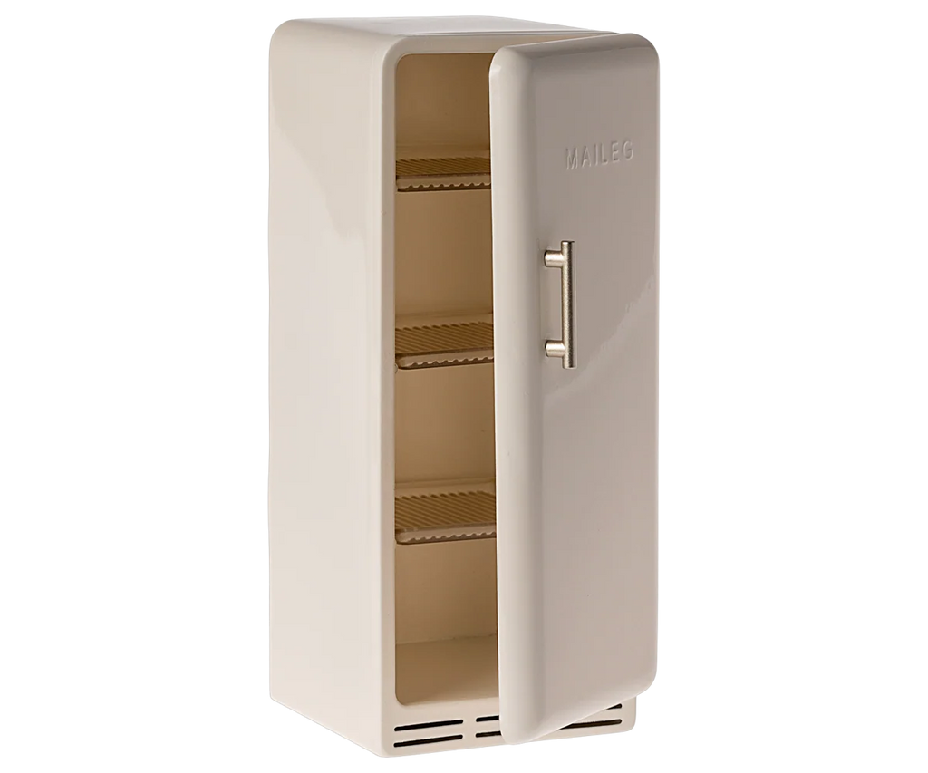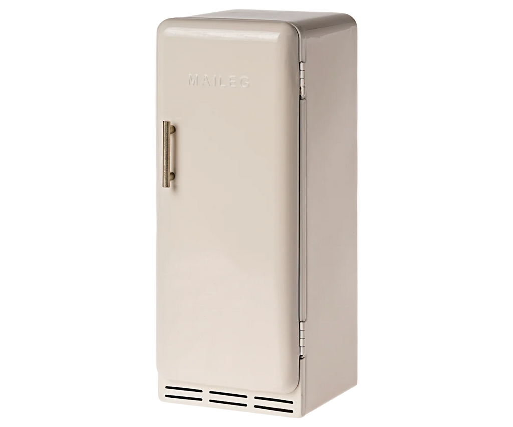 An old fashioned fridge that fits perfectly into the House of miniature dollhouse. The fridge is made in metal with magnetic lock and frosted shelves inside. A great addition to this fridge is our Miniature grocery box.