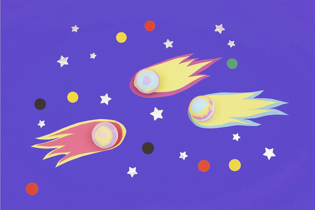 Fly them to bed (and the moon): enriched with camomille, our bath bombs offer a soothing break that calls for bedtime (did you just say yay?).
