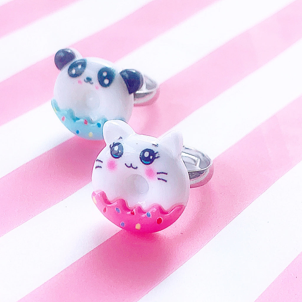 Cute little smiling animal donuts on an nickel-free adjustable ring.