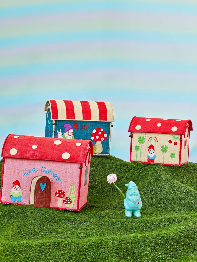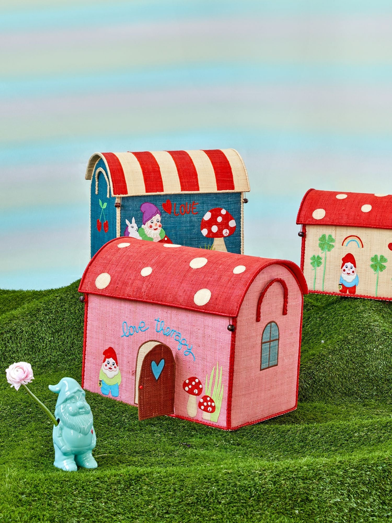This product is handmade in the amazing natural material, raffia. Raffia fibers come from palm fronds and all RICE raffia products come from Madagascar, which also is the place where the history of RICE began. Our raffia baskets and raffia houses were some of our very first products. The production takes place in two villages in the mountains of Madagascar and supports more than 300 families on the Red Island.