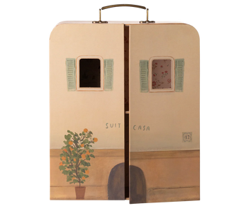 Welcome to the SuitCasa, a charming portable mouse house perfectly sized for Little Brother and Little Sister mice. With a convenient handle, it transforms into a suitcase when the magnetic doors are closed, making it easy to take your mice on adventures. Inside, two built-in beds with soft bedding provide a cosy place to sleep, and there is plenty of room to add small mouse-sized furniture and accessories to create a personalized, cozy home on the go.