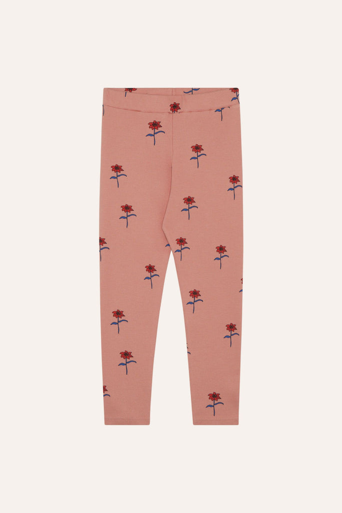 Ribbed leggings in pink with flower print and elastic waist.
