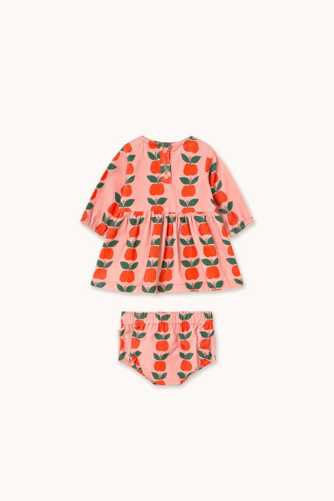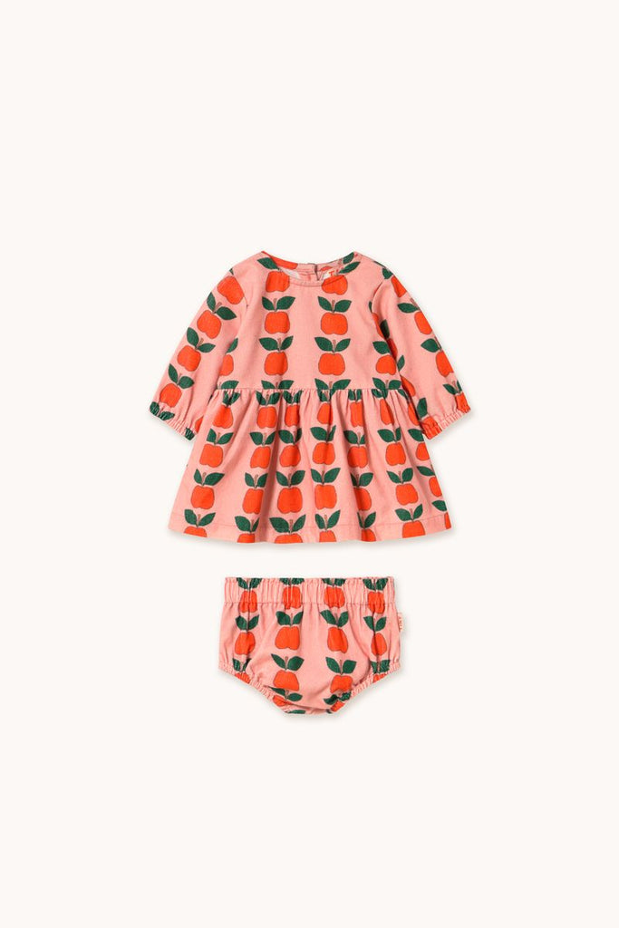 This Apples allover print baby set is crafted from soft 100% cotton corduroy fabric. The top features a relaxed silhouette, round neckline with buttons at the back, and long sleeves with elasticated cuffs. The bloomer offers a loose fit with an elastic waistband and elasticated hems, ensuring comfort and style for every adventure.