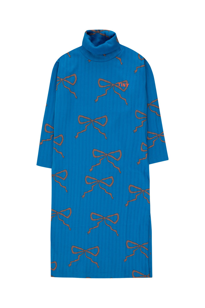 Bows Mockneck Dress in Blue