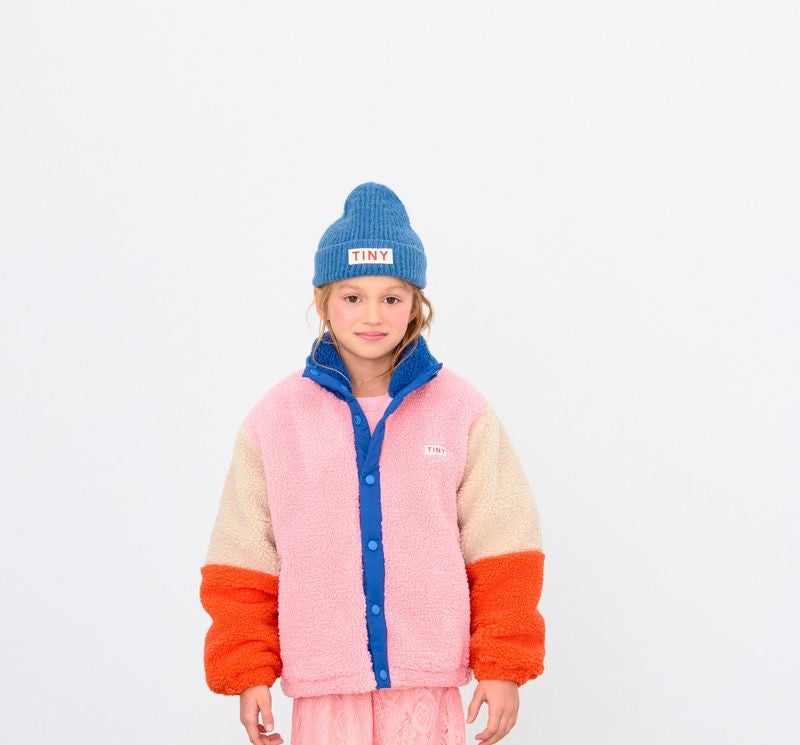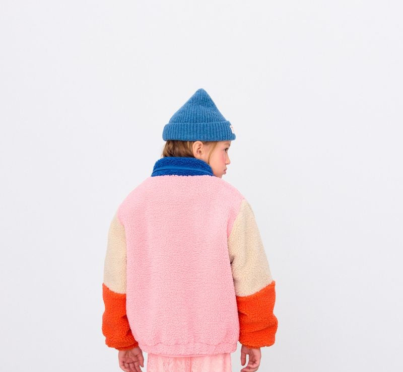Color Block Polar Sherpa Jacket in Dark Blue/Pink