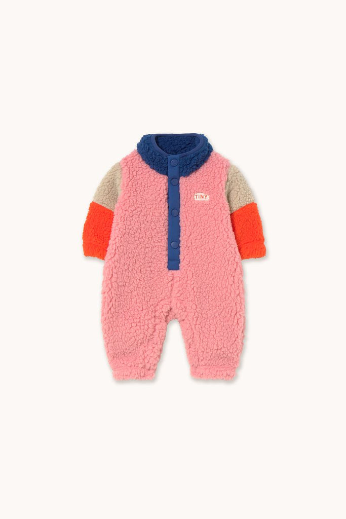 This color block polar sherpa one-piece is one of our staple designs and a customer favorite season after season. Designed to keep little ones warm and comfortable in cold weather, it features easy snap closures for hassle-free dressing, a mock neck silhouette, and elasticated hems. Practical and stylish, it offers a modern, cool look that stands out.