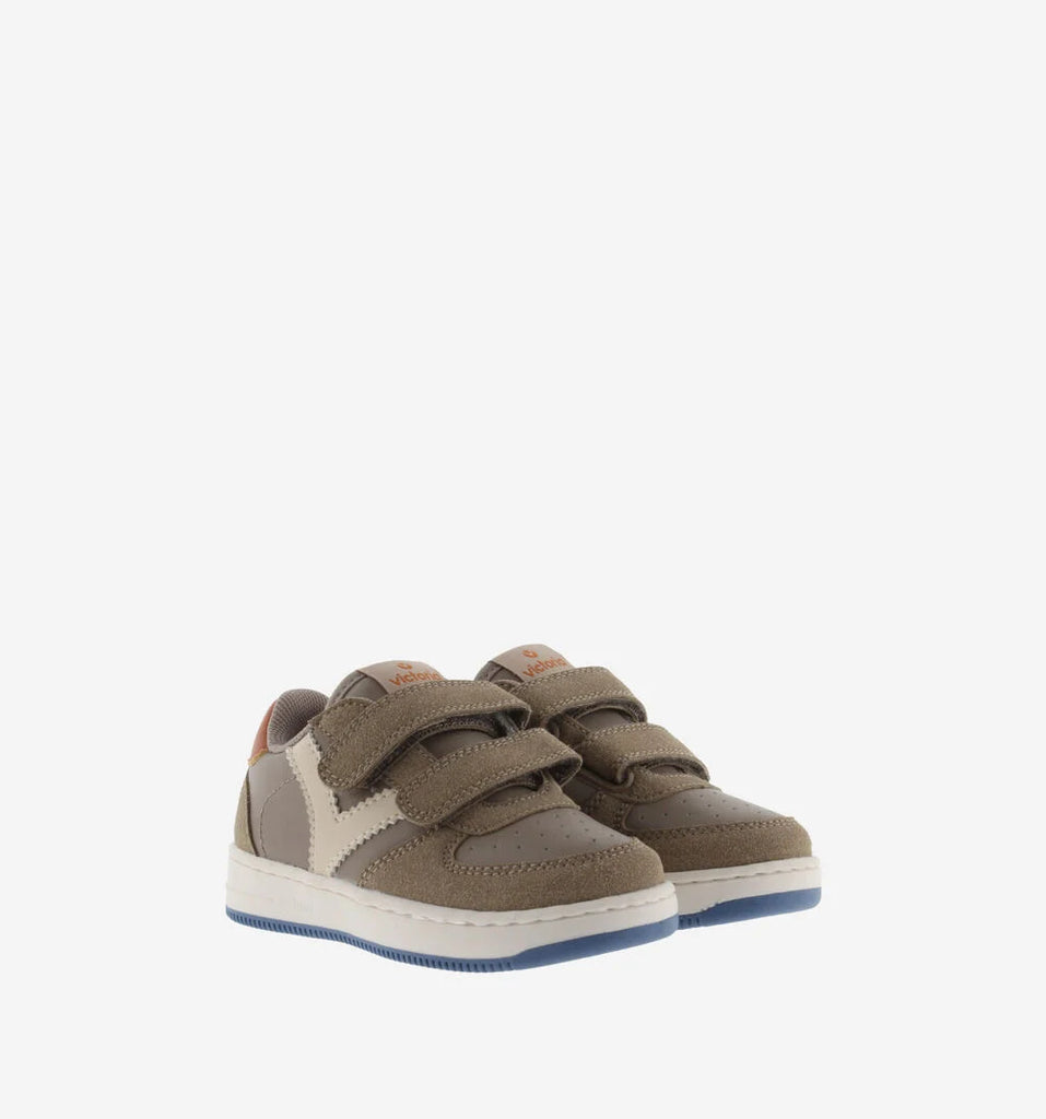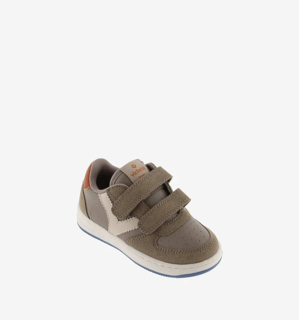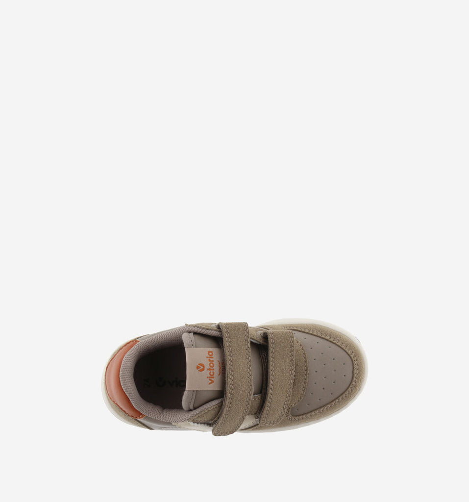 Kids' split leather trainers. Logo on the side and detail at the back in white faux leather. Fasten with straps for the perfect fit against the foot, making them easier to get on and off. They have a perforated upper for improved breathability.